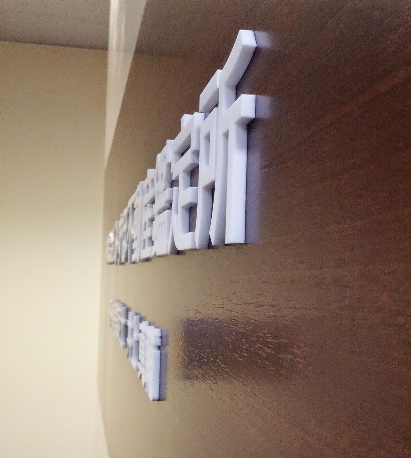 白色のアクリル板からのカットなので、どの角度からも文字は白です。(当り前。)